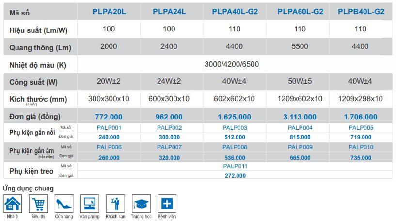 - Phụ kiện: PALP001 gắn nổi; PALP006 gắn âm